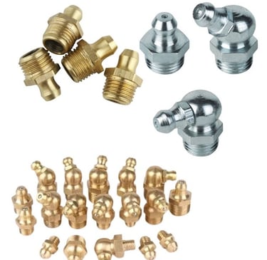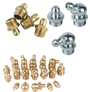 We offer a wide range of grease nipples and fittings designed for efficient and reliable lubrication of machinery and moving components. These essential parts allow for easy and secure connection of grease guns, ensuring that bearings, joints, and mechanical linkages receive proper lubrication to reduce wear and extend equipment life. Available in various thread sizes, angles (straight, 45°, and 90°), and materials, our grease fittings are suitable for use in industrial machinery, automotive systems, robotics, and heavy equipment.